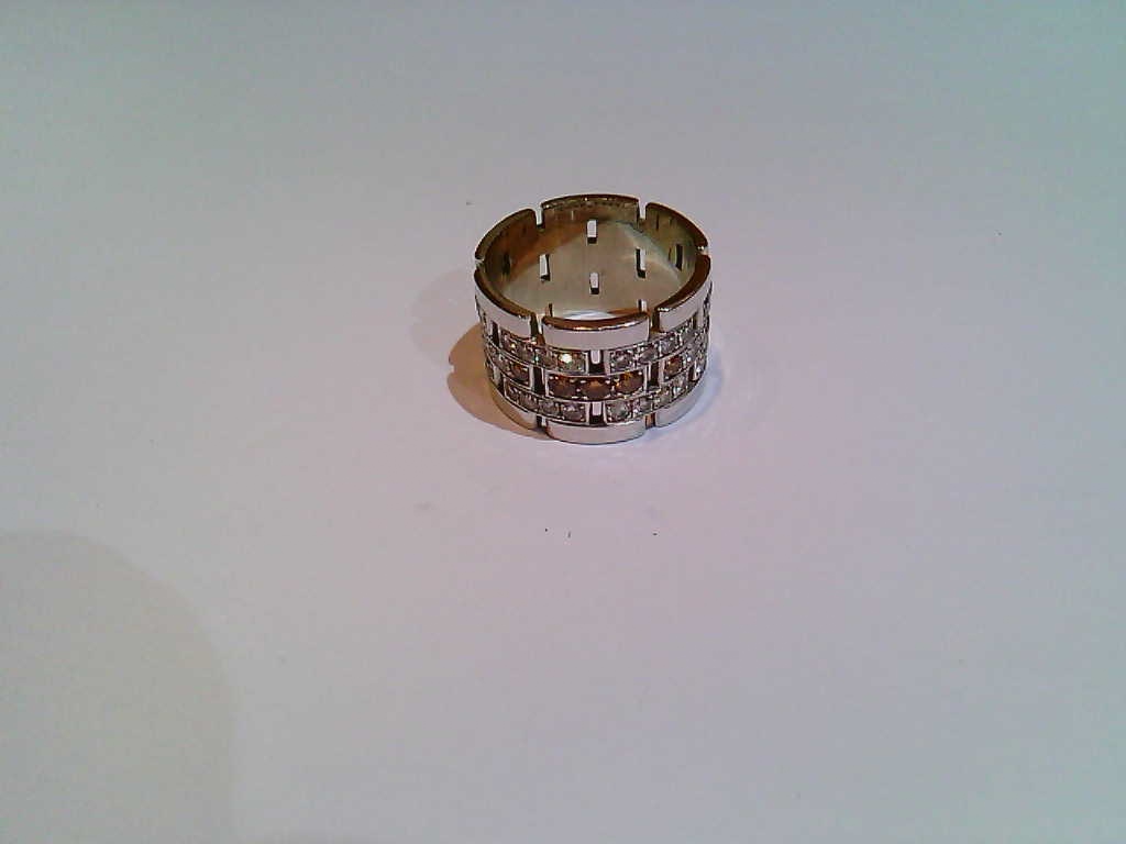 Anel ouro Branco sem contraste com peqs diamantes brancos e amarelos com 15.5g